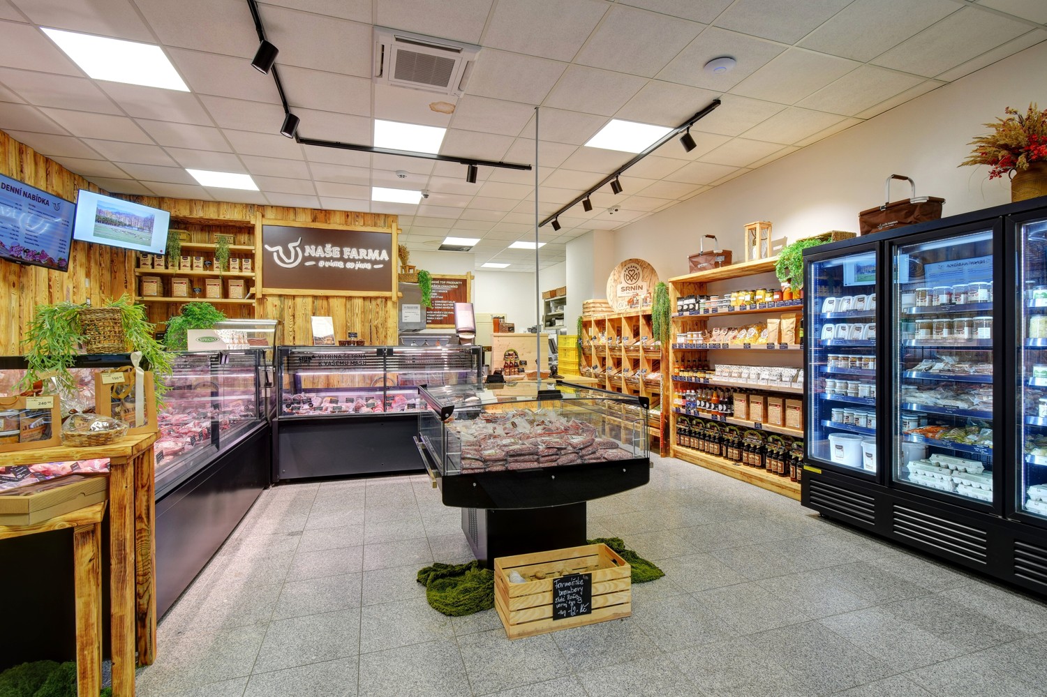 Bauernhofprodukte Náš Grunt ist ein Ort, an dem ehrliches Handwerk, hochwertige Zutaten und die Arbeit tschechischer Bauern zusammenkommen. Er bietet Produkte aus der Region an, darunter hausgemachte Marmeladen, Qualitätshonig, Milchprodukte, Eier vom Bauernhof sowie Obst und Gemüse der Saison. In den Geschäften finden Sie auch Wurstwaren ohne unnötige Chemie, gereiftes Fleisch und Spezialitäten von Metzgern, die auf traditionelle Praktiken und ehrliche Produktion bauen.