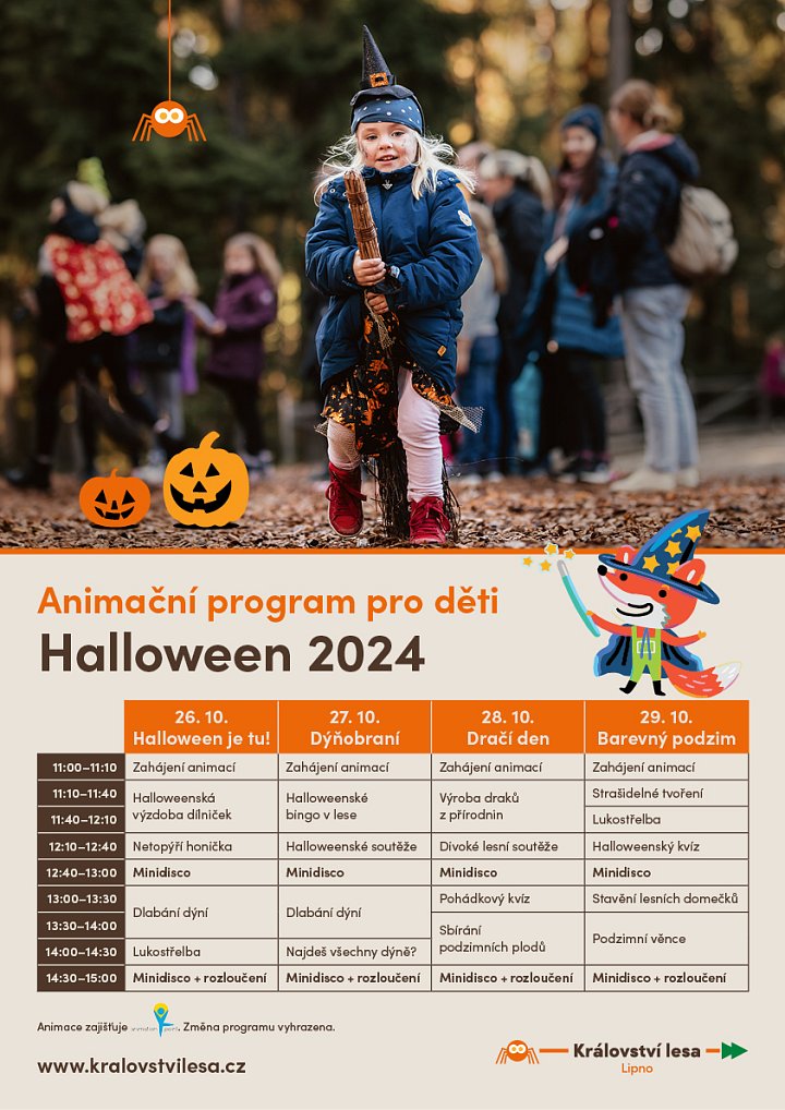 Přijďte si užít podzimní volno. Připravení jsou oblíbené podzimní animace v Království lesa. Akce začíná v 12:00 a končí v 15:30. Na děti čeká maskot lišák Fox, tematické soutěže, kreativní dílničky a disco trysko.Animace jsou zdarma v rámci klasického vstupného, takže za ně nezaplatíte ani korunu navíc.