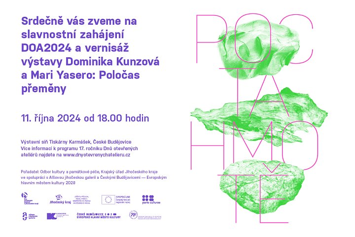Doprovodná výstava Poločas přeměny (12.10.–22. 11. 2024) v prostoru Tiskárny Karmášek vytvořená ve spolupráci s Českými Budějovicemi – Evropským hlavním městem kultury 2028, představí dílo českobudějovické umělkyně Dominiky Kunzové a zvukové designérky a skladatelky Mari Yasero žijící v nizozemském Haagu. Vypráví o na první pohled neviditelných proměnách okolního prostředí a otevírá prostor pro úvahy o čase, krajině i vlastní intuici.