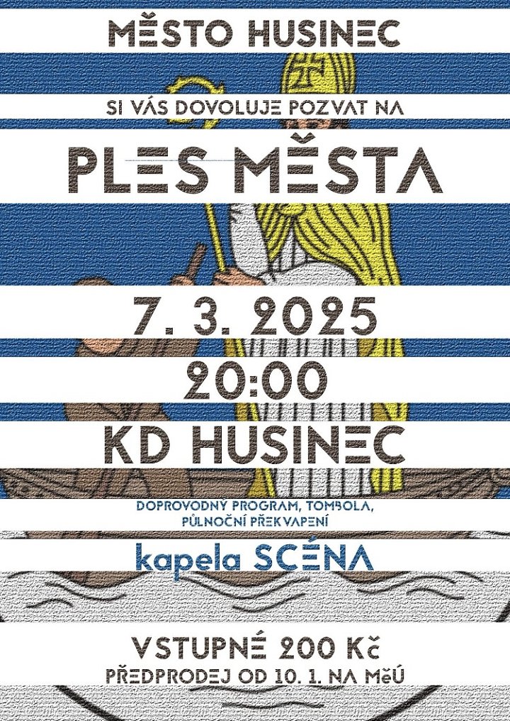 Město Husinec si vás dovoluje pozvat na PLES MĚSTA.