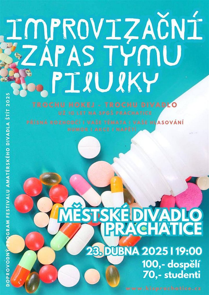 Zápas v improvizaci podle České improvizační ligy inspirovaný hokejovými pravidly. Tým Pilulky (Prachatický Interaktivní Lehce ULítlý Klub Improvizace), působící při Střední pedagogické škole v Prachaticích, slaví deset let! Sejdou se aktivní hráči i Pilulky, které už prošly. Rozdělí se na týmy, které spolu budou improvizovat na divácká témata.