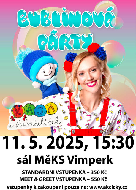STANDARDNÍ VSTUPENKA – 350,- Kč - zahrnuje vstup na Kája a Bambuláček Bublinovou párty.