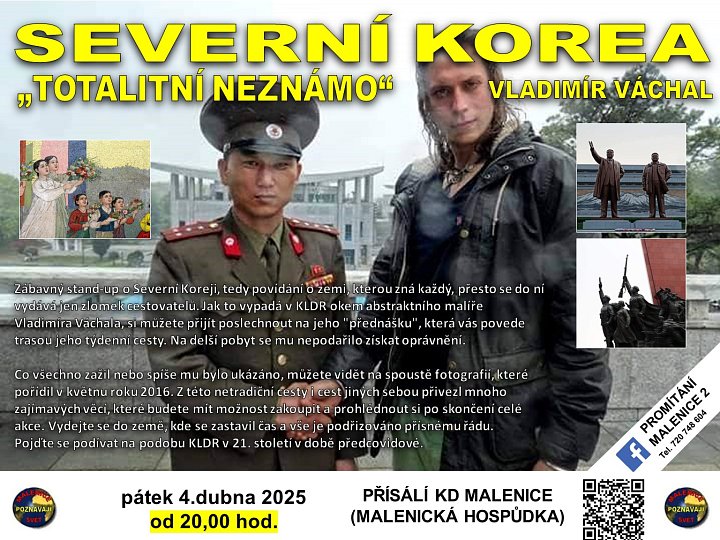 Co všechno zažil nebo spíše mu bylo ukázáno, můžete vidět na spoustě fotografií, které pořídil v květnu roku 2016. Z této netradiční cesty i cest jiných sebou přivezl mnoho zajímavých věcí, které budete mít možnost zakoupit a prohlédnout si po skončení celé akce. Vydejte se do země, kde se zastavil čas a vše je podřizováno přísnému řádu. Pojďte se podívat na podobu KLDR v 21. století v době předcovidové.