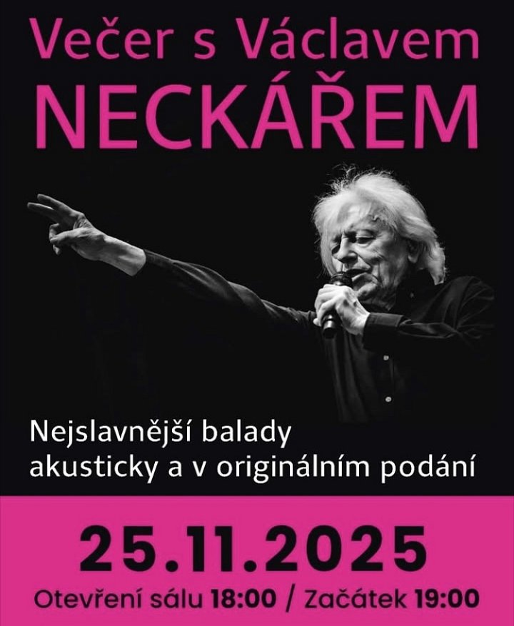 Legendární Václav Neckář přijíždí do Prachatic! Přijďte si užít jeho nejslavnější balady v akustickém a originálním podání. Čeká vás večer plný emocí, nostalgie a skvělé hudby!