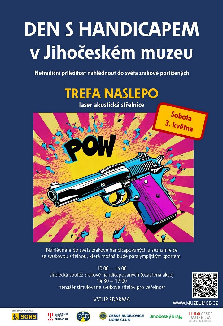 V rámci DNE S HANDICAPEM bude v muzeu probíhat neoficiální soutěžní setkání zrakově handicapovaných ve sportovní disciplíně simulovaná zvuková střelba s názvem TREFA NASLEPO, na které v odpoledních hodinách naváže trenažér simulované zvukové střelby pro širokou veřejnost, kde si návštěvníci muzea budou moci vyzkoušet sportovní disciplínu aspirující na zařazení mezi paralympijské sporty.