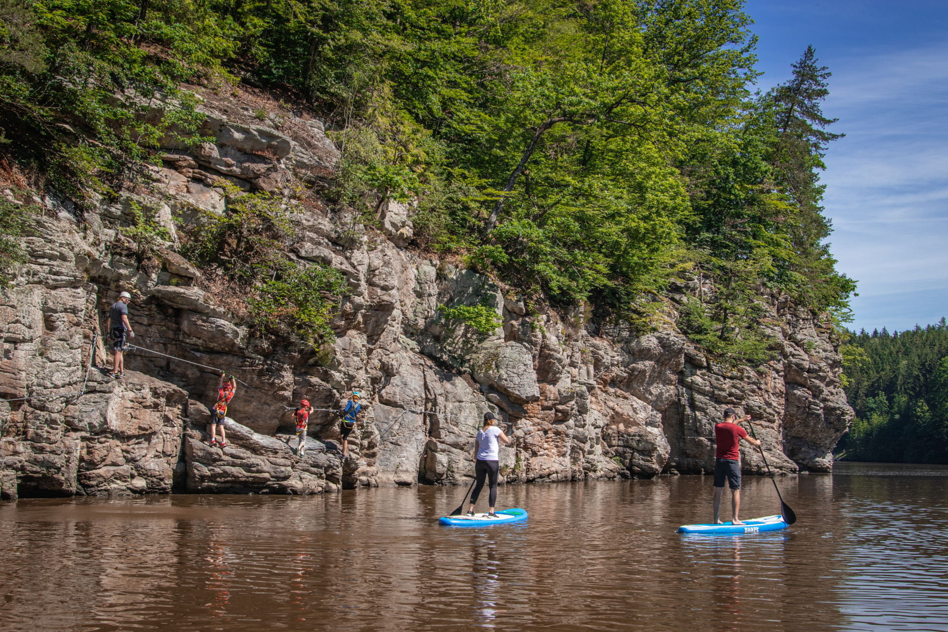 Od 10 do 16 hodin si můžete zdarma vyzkoušet mnoho vodních sportů. Stačí přijít kdykoliv v tento čas k molu nebo do půjčovny v Areálu Hluboká a vyzkoušet si šlapací i normální paddleboardy, šlapací kajak, mořský kajak a loďky přímo na řece. Půjčení nelze rezervovat