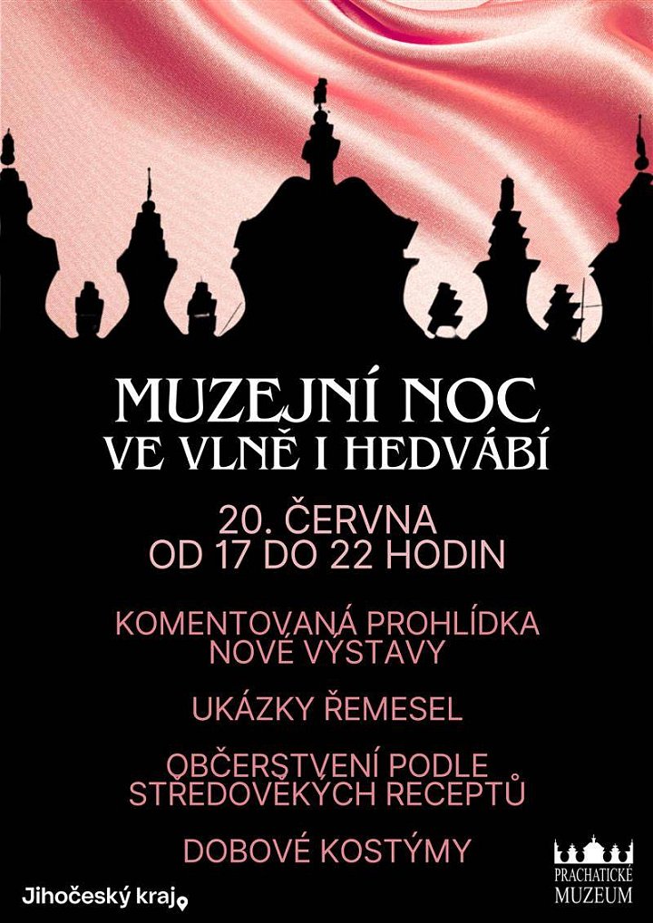 Můžete se těšit na komentovanou prohlídku nové výstavy, ukázky řemesel, občerstvení podle středověkých receptů a budete moci si vyzkoušet části dobových kostýmů a pořídit si tak stylovou fotku. V rámci muzejní noci proběhne vernisáž výstavy Ve vlně i hedvábí.