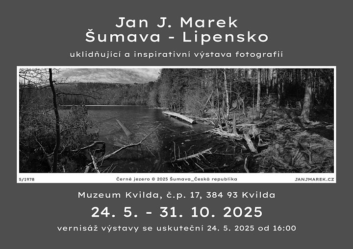 Vernisáž: Šumava - Lipensko - Jan J. Marek Místo konání: Kvilda 24. 5., 1600 — 0000 Zveme vás na vernisáž nové tentokrát černobílé Šumavy.