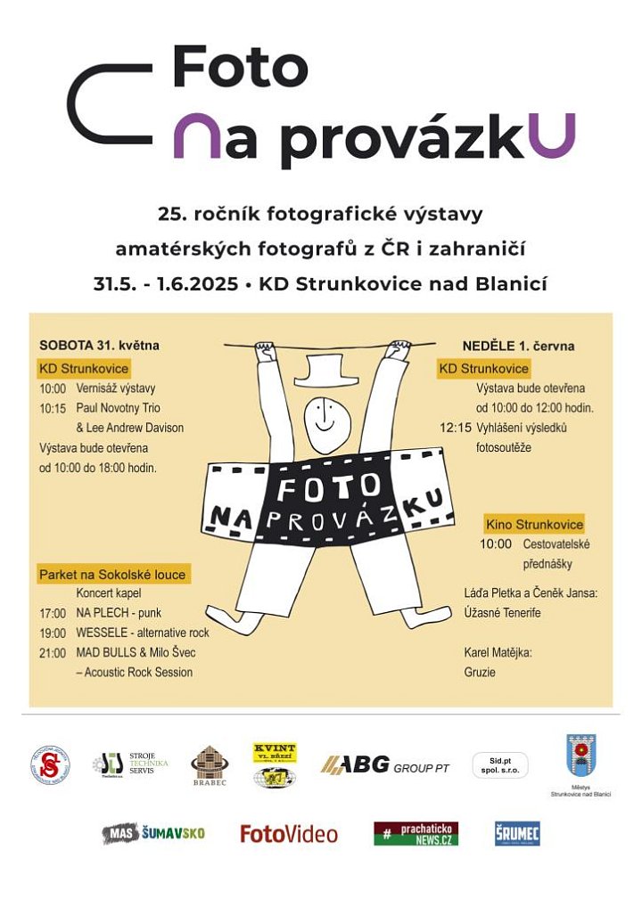 FOTO na PROVÁZKU 2025 Místo konání: Strunkovice nad Blanicí 31. 5., 1000 — 1. 6., 1215 25. ročník fotografické výstavy s doprovodným kulturním programem. Vstupné: dobrovolné