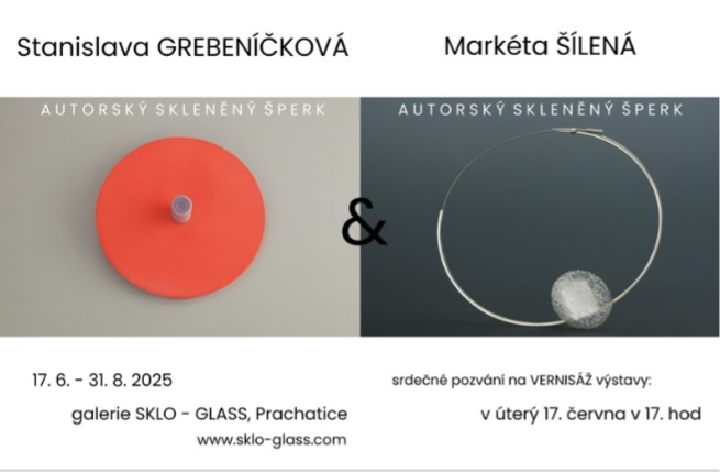 Vernisáž: Stanislava Grebeníčková & Markéta Šílená Místo konání: Prachatice 17. 6., 1700 — 0000 Vernisáž výstavy autorských skleněných šperků.