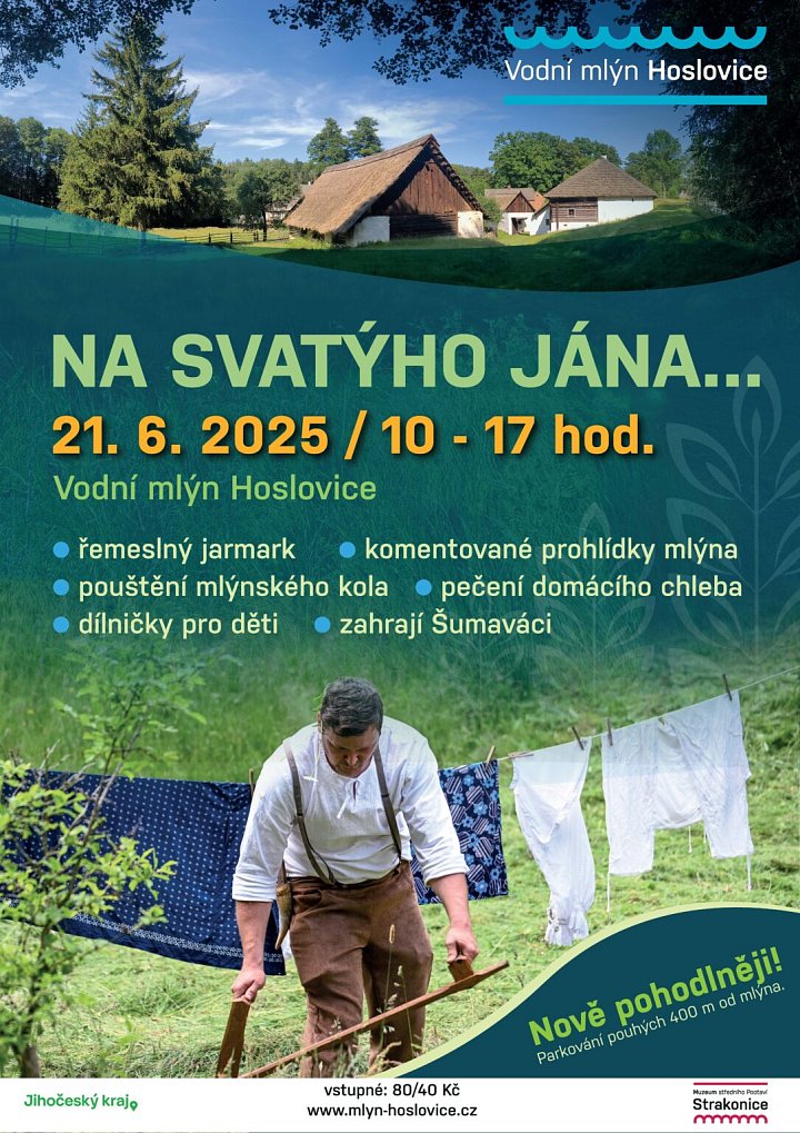 Řemeslná akce ve vodním mlýně s pečením a ochutnávkou chleba, řemeslným jarmarkem, komentovanými prohlídkami, pouštěním mlýnského kola a dílničkami pro děti.