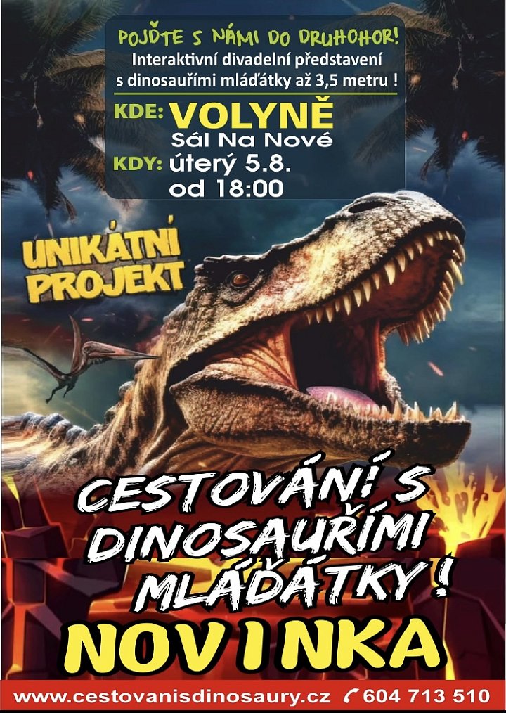 Interaktivní divadelní přednáška pro děti na téma život dinosaurů v druhohorách, která je doplněná replikami fosilií ve skutečných velikostech a animatronickými dinosaury různých velikostí od malých mláďátek až po 7-mi metrové exempláře.