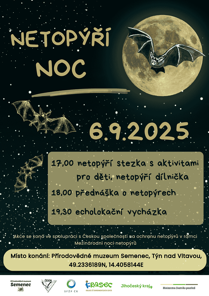 Akce se koná ve spolupráci s Českou společností na ochranu netopýrů v rámci Mezinárodní noci netopýrů. Více informací: www.netopyrinoc.cz