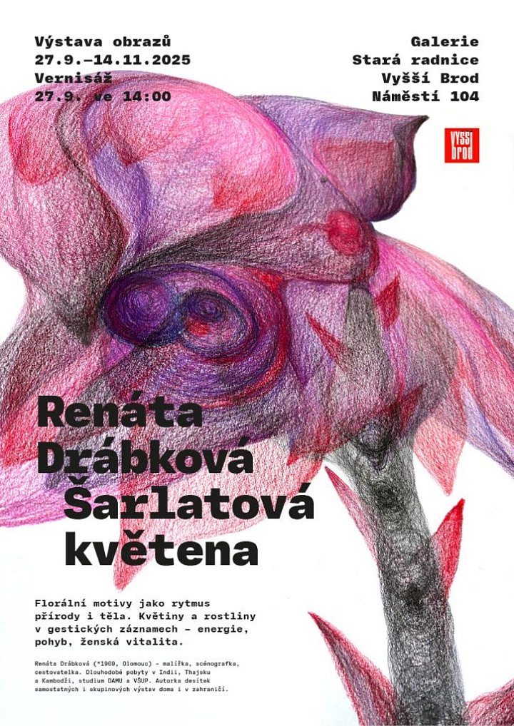 Florální motivy jako rytmus přírody i těla. Květiny a rostliny v gestických záznamech – energie, pohyb, ženská vitalita. To je výstava paní Renáty Drábkové v Galerii Stará radnice. Vernisáž 27. září ve 14:00.