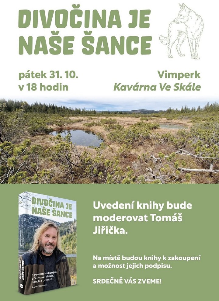 Beseda: Divočina je naše šance Místo konání: Vimperk 31. 10., 1800 Divočina je naše šance - S Pavlem Hubeným o Šumavě, vlcích, lidech a přírodě.