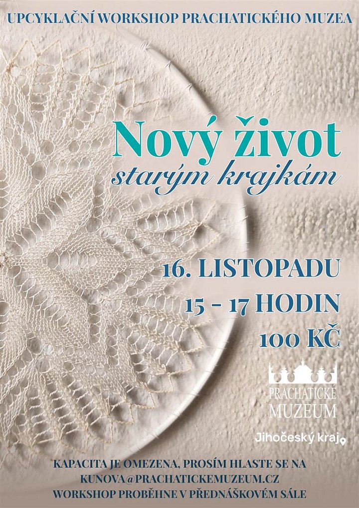 Překrásné, ručně vyrobené krajkové dečky jsou nejčastějším darem našemu muzeu. Nechceme, aby takové skvosty čekaly dlouhá léta na využití schované v krabici. Část těchto deček využijeme na workshopu, aby mohly, jako nástěnná dekorace, opět zdobit naše domovy.