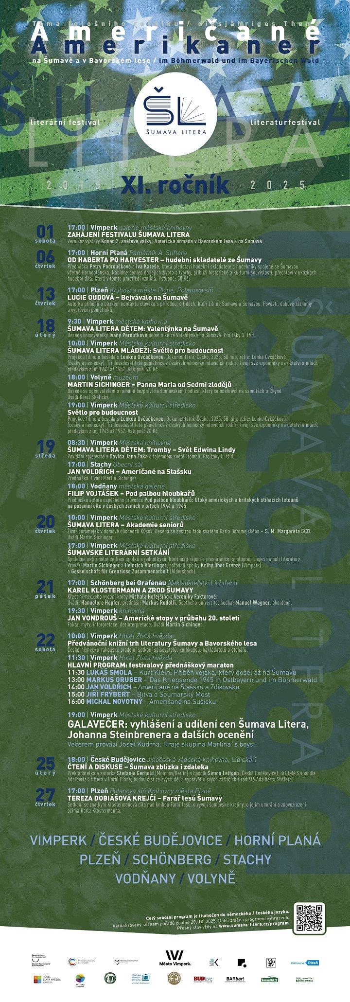 FESTIVAL ŠUMAVA LITERA Místo konání: Vimperk 18. 11. — 22. 11. Zahájení festivalu Šumava litera Program: