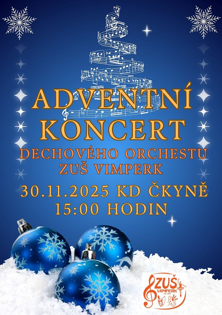 Adventní koncert dechového orchestru Vimperk Místo konání: Čkyně 30. 11., 1500 Adventní koncert dechového orchestru Vimperk se koná v sále Kulturního domu.