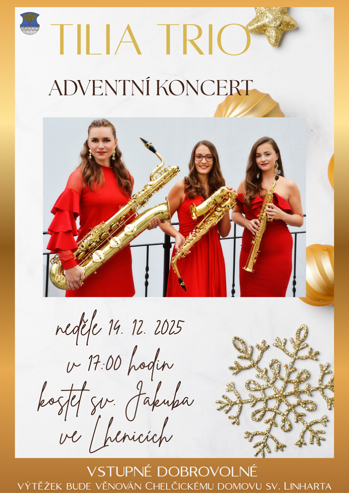 Adventní koncert - TILIA TRIO Místo konání: Lhenice 14. 12., 1700 Zveme vás na adventní koncert saxofonového tria. Vstupné: dobrovolné