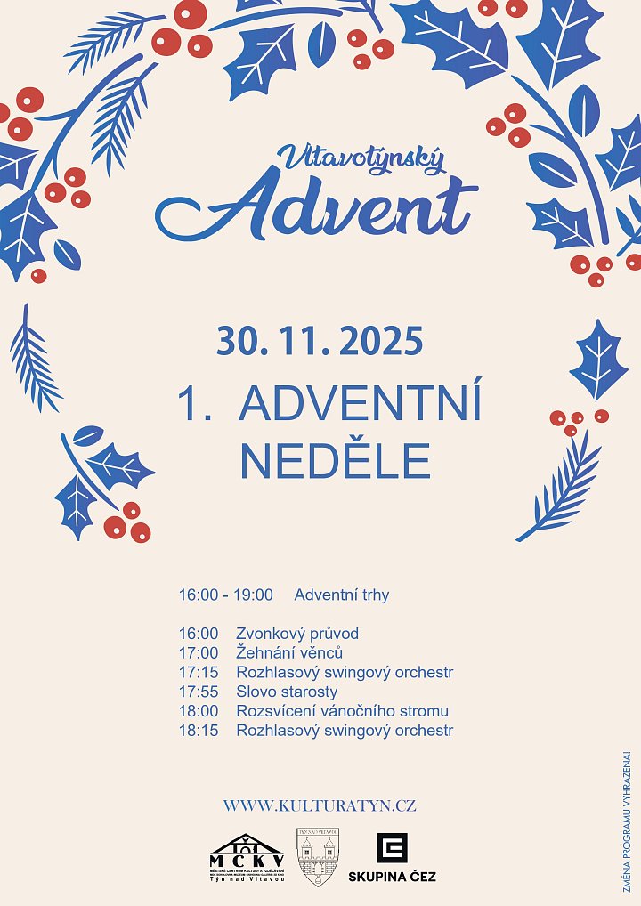 V neděli 30. listopadu se na náměstí míru uskuteční první adventní neděle s rozsvícením stromu a doprovodným programem.