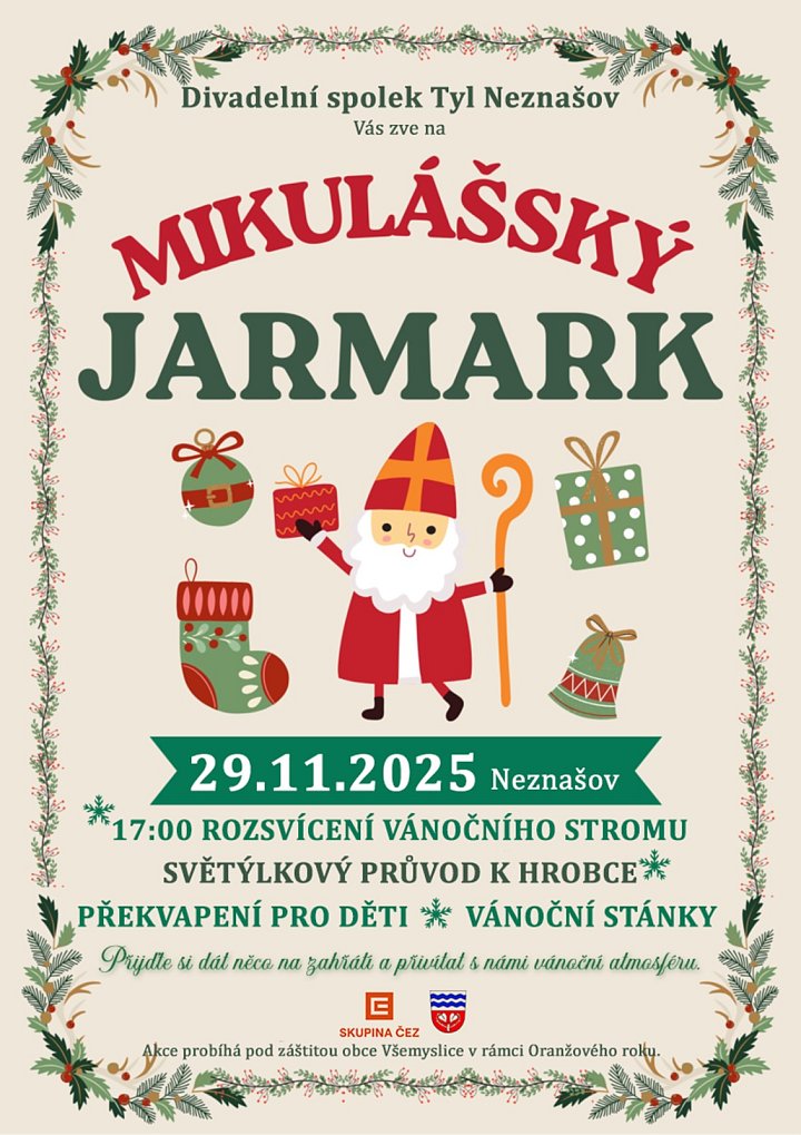 Zveme vás do Neznašova na Mikulášský jarmark. Těšit se můžete na následující program: