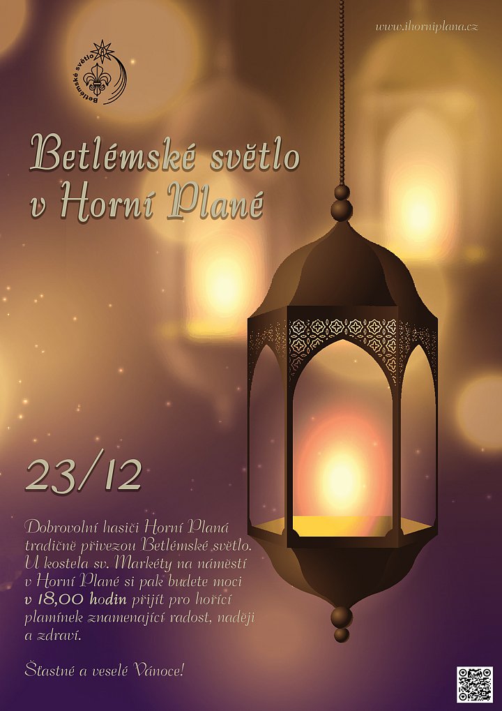 Hasiči Horní Planá tradičně přivezou Betlémské světlo. Sváteční slovo pronese starosta města Horní Planá Bc. Petr Šimák.