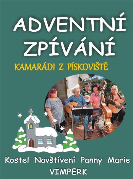 Koncert: Kamarádi z pískoviště Místo konání: Vimperk 8. 12., 1800 Adventní zpívání folkové kapely z Písku.