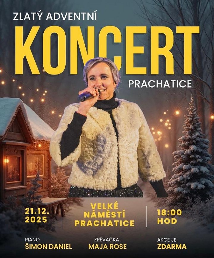 4. adventní neděle v Prachaticích Místo konání: Prachatice 21. 12., 1800 Rozsvícení 4. adventní svíce s doprovodným programem. Na zlatý advent se těšte na koncert MAJA ROSE.