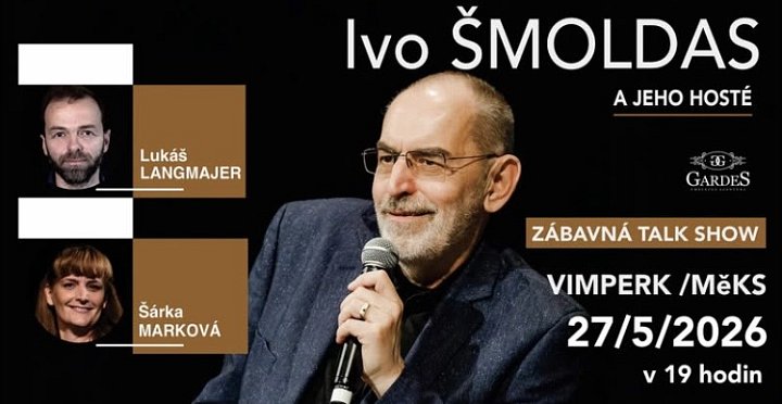 Ivo Šmoldas je skvělý moderátor, který dokáže vést rozhovor s lehkostí a vtipem. Přijďte se přesvědčit sami, kde Ivo Šmoldase doprovodí herec Lukáš Langmajer a zpěvačka Šárka Marková.