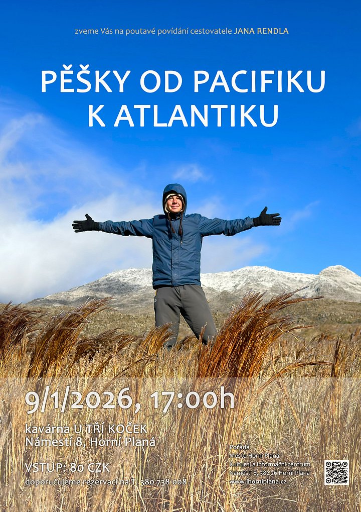 Zveme Vás na úžasné vyprávění cestovatele a fotografa Jana Rendla nazvané PĚŠKY OD PACIFIKU K ATLANTIKU.