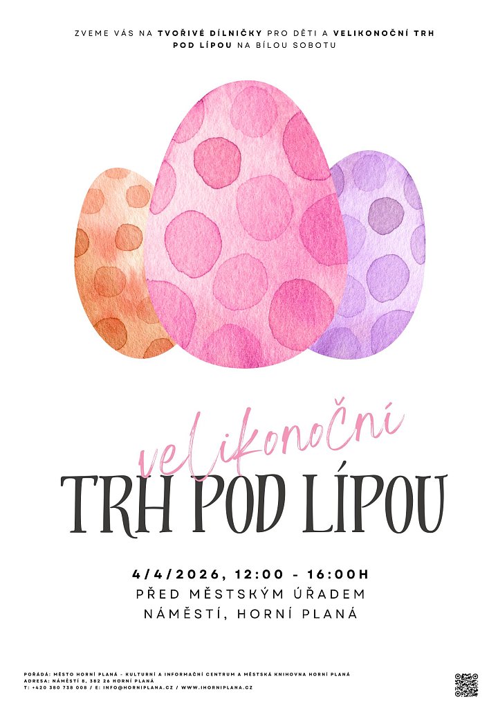 Zveme Vás na tradiční velikonoční trh pod lípou na Bílou sobotu. Řemeslné stánky, dobroty, tvořivé dílničky pro děti. To vše v čase od 12 do 16 hodin, pod velkou lípou dole na náměstí – před městským úřadem.