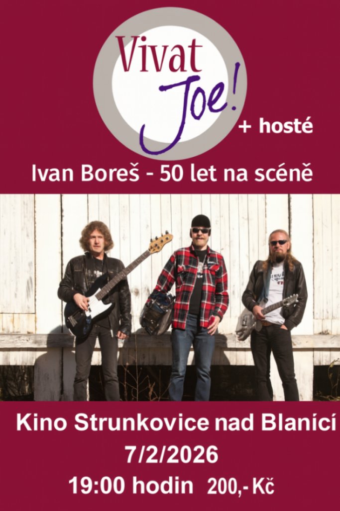 Koncert: Ivan Boreš - 50 let na scéně & Vivat Joe! Místo konání: Strunkovice nad Blanicí 7. 2., 1900 Narozeninový koncert Ivana Boreše s kapelou Vivat Joe! a hosty. Vstupné: 200,- Kč