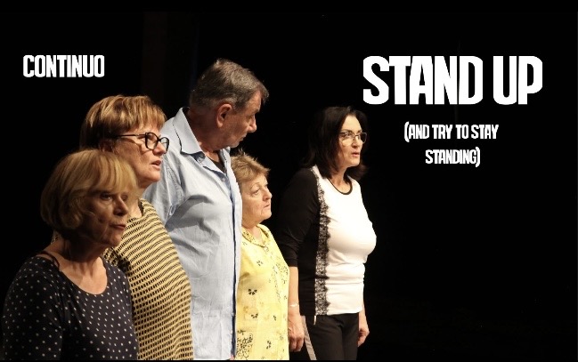 Autorská inscenace Stand Up (and Try to Stay Standing) je něčím mezi storytellingem, stand-upem, fyzickým divadlem a postmoderním kabaretem.
