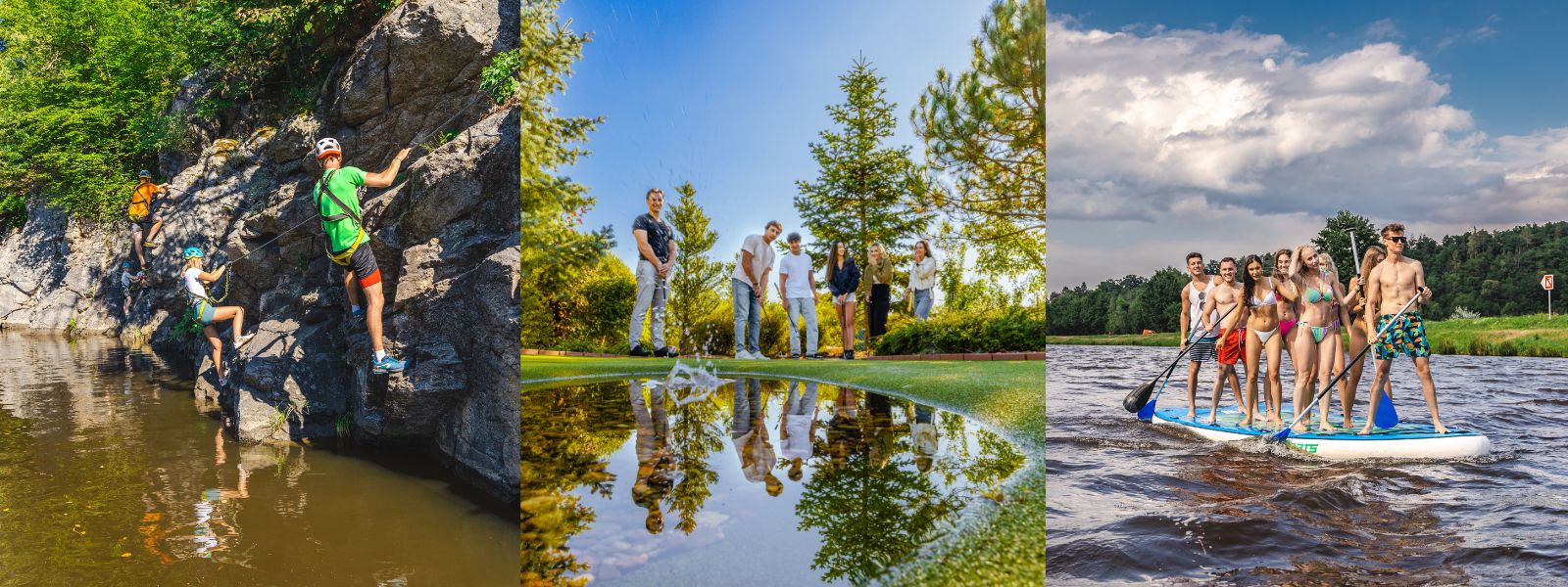 Odpoledne: Minigolf, paddleboarding nebo plážový volejbal Po adrenalinovém dopoledni se uvolněte při skupinové hře adventure minigolfu v Areálu Hluboká. Milovníci vody mohou poté vyzkoušet paddleboarding na Vltavě nebo relaxační plavbu na lodi. Je to ideální způsob, jak si užít řeku a společně se pobavit. Podél řeky najdete několik míst, kde si zahrát plážový volejbal.