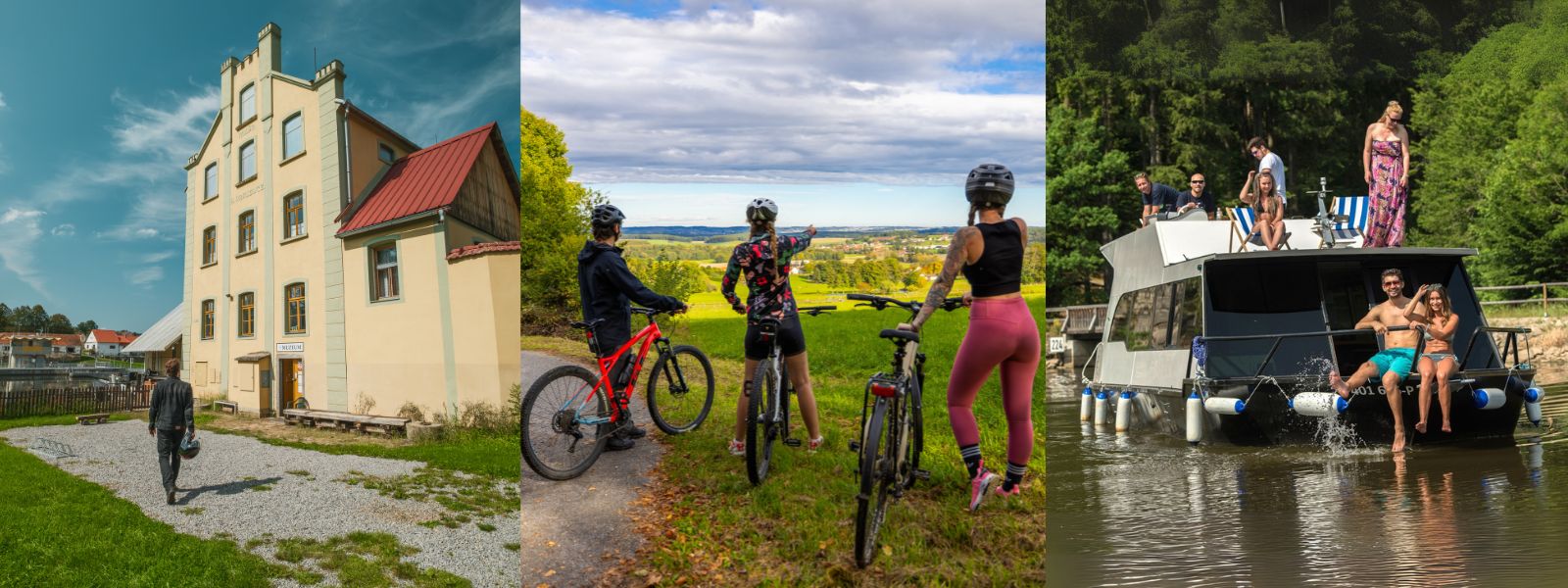 Po obědě: Vyjížďka na kole podél Vltavy Zapůjčte si kola či koloběžky a vyrazte na cyklostezku podél Vltavy (např. trasa Hluboká nad Vltavou – Týn nad Vltavou). Trasa vás provede přírodou a nabízí nezapomenutelné výhledy na řeku a okolní krajinu.