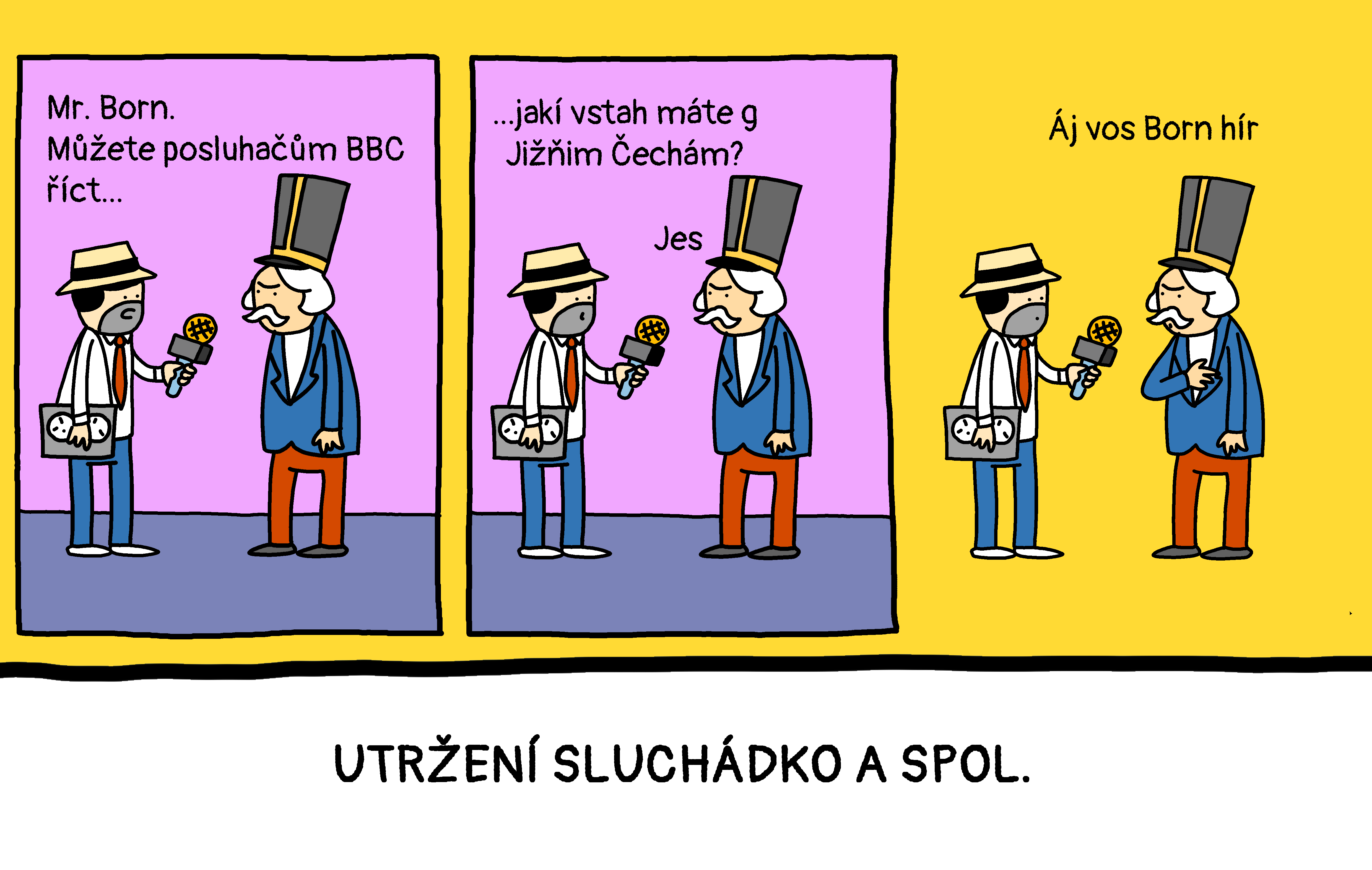 České Velenice - „Ale jižní Čechy ve mně už zůstaly,“ říkal Born o své tvorbě. „Dodnes vidím dědky v černém, v kloboucích, jak v neděli čekají na nádraží na vlak. Ta romantika zůstává i v mých kresbách.“ Tato vzpomínka odráží atmosféru pohraničního městečka, kde se mísily české a německé vlivy, a kde železnice hrála klíčovou roli v každodenním životě.