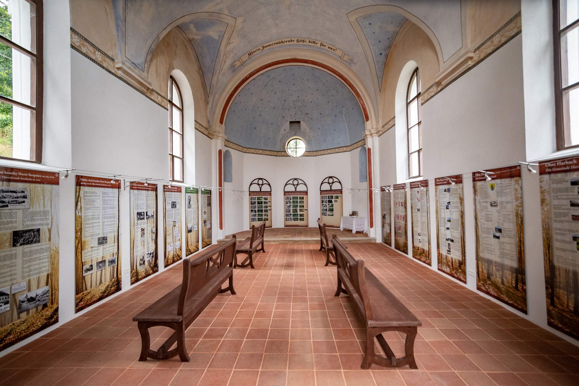 Součástí výstavy jsou letecké snímky osad z padesátých let minulého století, které lze porovnat se snímky současnými. Návštěvník se zde rovněž seznámí s historií státního znaku i místními pověstmi. Panely na stěnách kaple současně informují o společných projektech a turistických cílech obcí Horní Stropnice a rakouského Harbachu a jejich okolí.