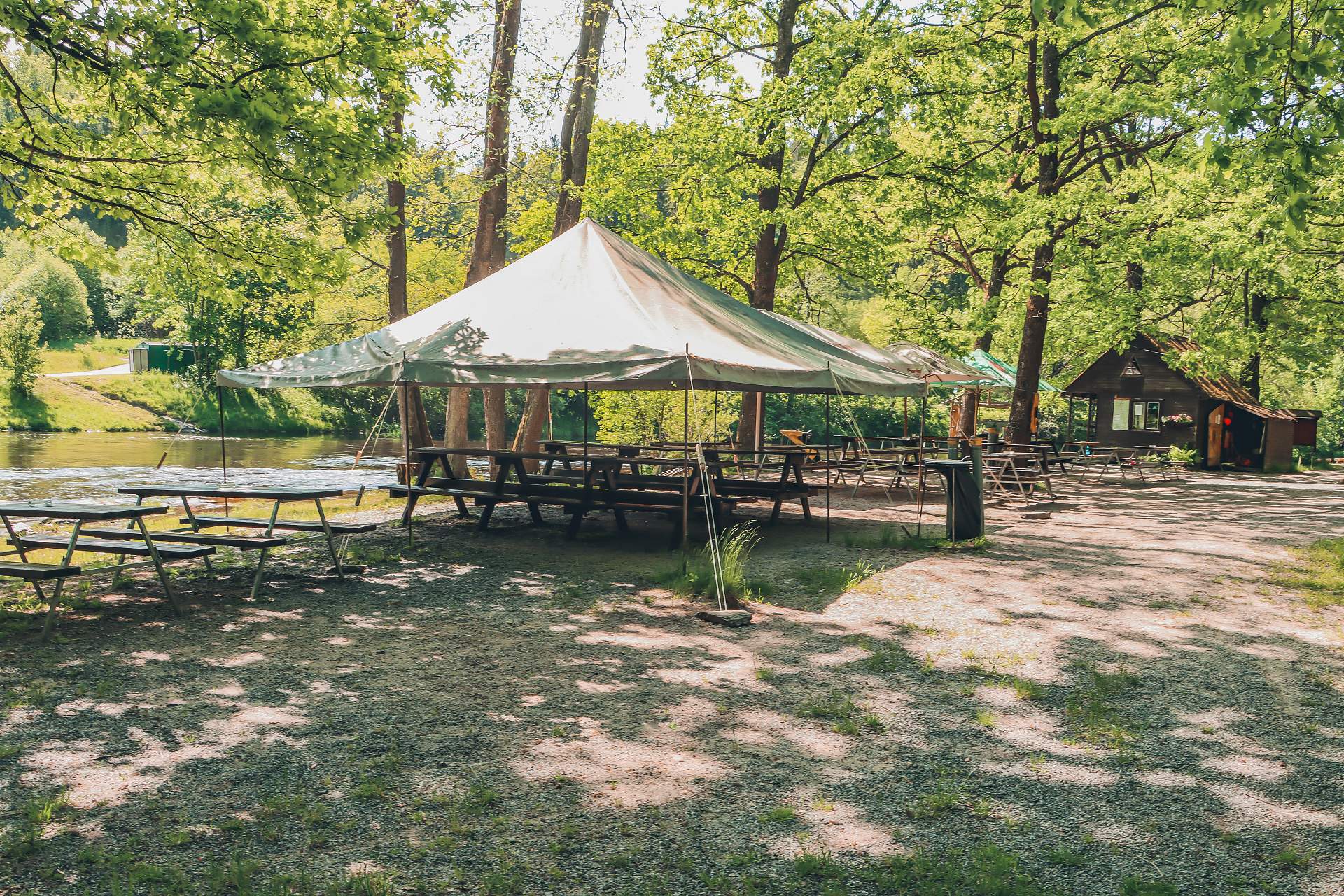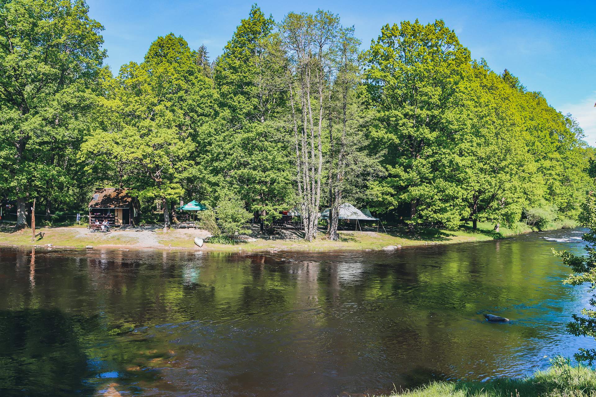Kemp U tří veverek leží na klidném místě, jedná se o skromnější kemp spíše tábořiště, toto ryze vodácké tábořiště má omezenou kapacitu a k přenocování je zde nutná předešlá rezervace.