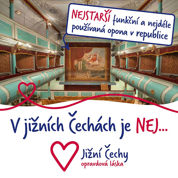 Jedná se o nádhernou oponu v Divadle Josefa Kajetána Tyla v Třeboni. V roce 1871 ji namaloval akademický malíř František Skála, je jednou z nejstarších zachovaných opon v republice a pravděpodobně nejstarší funkční a nejdéle používanou oponou v Čechách a na Moravě vůbec.