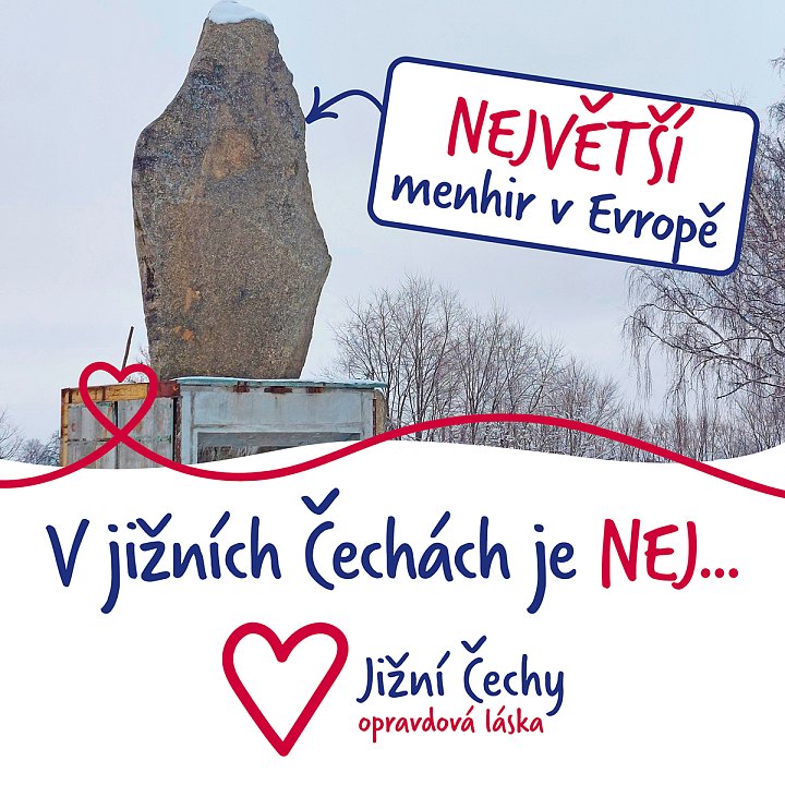 "Velká skála“, jak je tento menhir pojmenován, je největším menhirem v Evropě a byl přivezen z vesnice Studánky (Vyšší Brod). Jeho základnou je železobetonový kvádr o rozměrech 380 × 390 × 340 cm, přičemž kámen se základnou, ve které „levituje“, dosahuje hmotnosti 150 tun. Za pomoci jeřábu a těžké techniky byl menhir částečně vztyčen ve středu 10. května 2023 a pozorovat ho můžete v Holašovicích.
