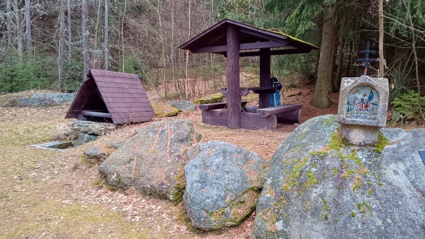 Zvuky, které se ozývají z nitra země, dodávají místu zvláštní atmosféru, jako by voda sama něco vyprávěla. V okolí studánky najdete malý křížek s lavičkou, ideální pro krátké zastavení a klidný odpočinek v přírodě.